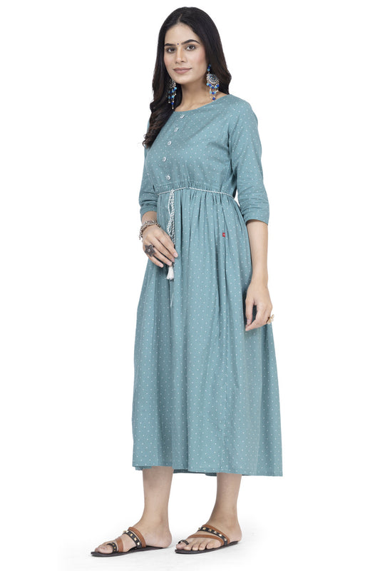 Cotton printed rama blue frock